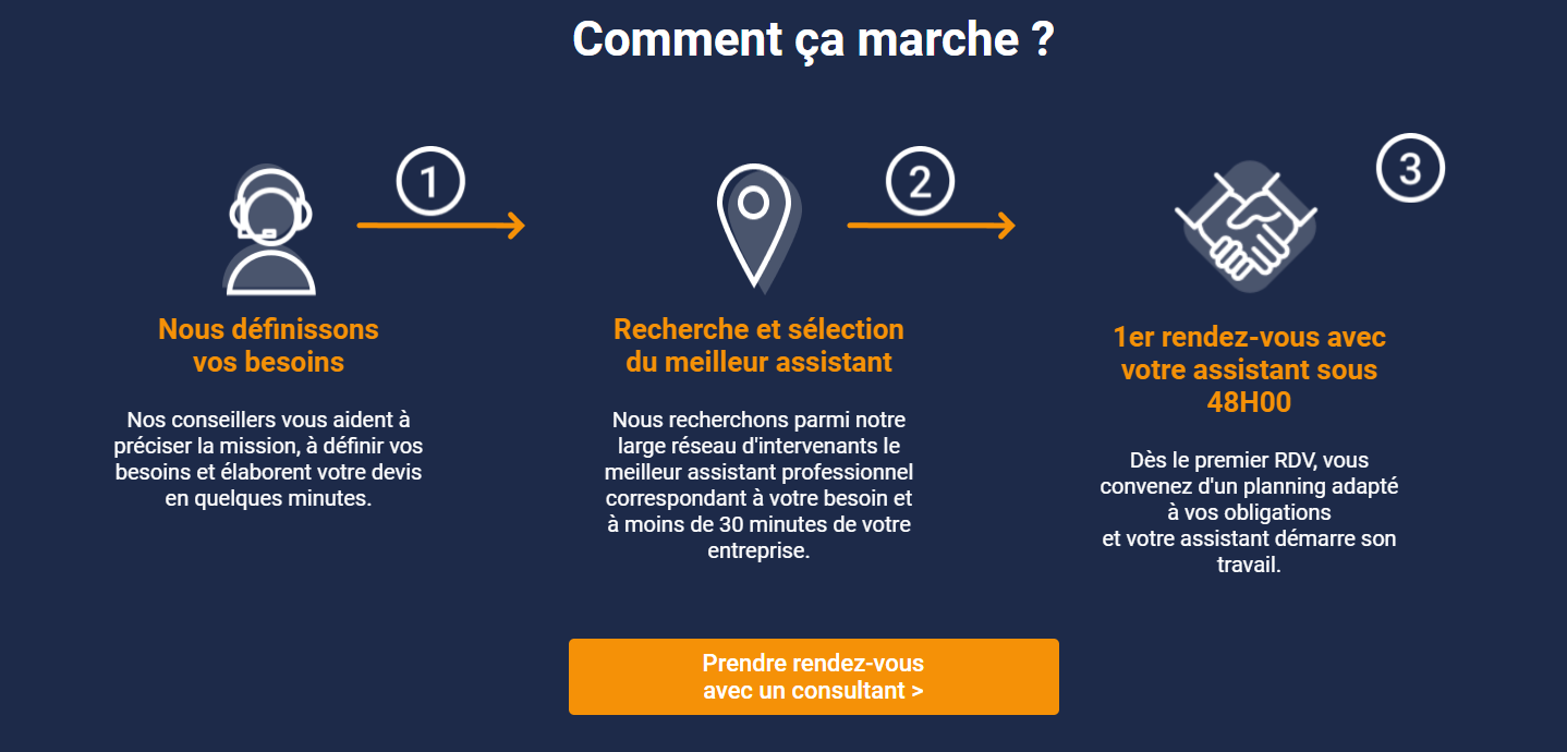 Ce temps d’échange avec un conseiller nous permet d’évaluer quelle offre vous conviendrait le mieux. Nous sommes l’antithèse même d’une plateforme de recrutement ou de freelance où un client choisit seul son intervenant sur le web ! 😅